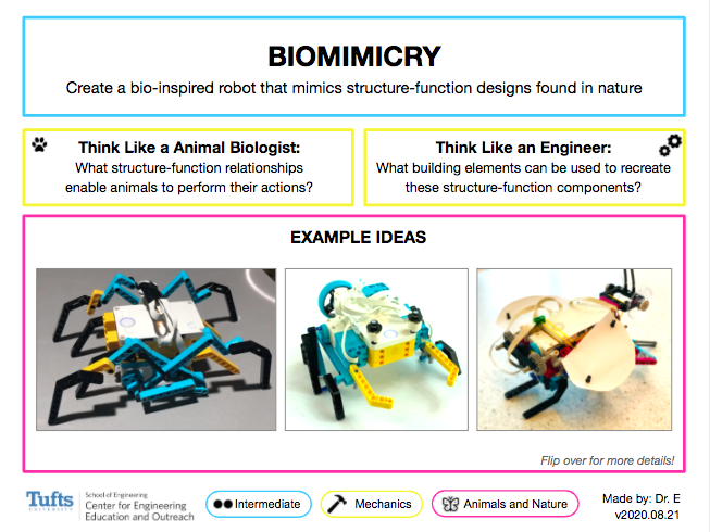 Creating engineering solutions that are inspired by biology requires careful analysis of the structure-function relationships found in nature. Students watched this video to learn about Biomimicry, and then each chose an animal to research. They studied the animal’s components that allow it to move, and then thought about how to recreate using the SPIKE Prime system. Replicating the movement with the robot could be done just using the Default Program (Heart Function) or, if students wanted to explore coding, some simple programming control. Students had one week to complete this assignment.