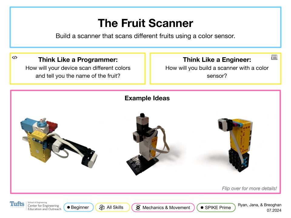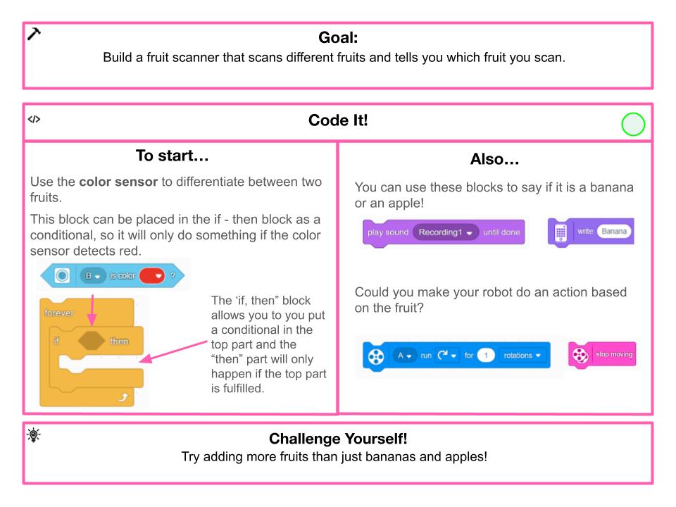 Build a fruit scanner that scans different colored fruits.