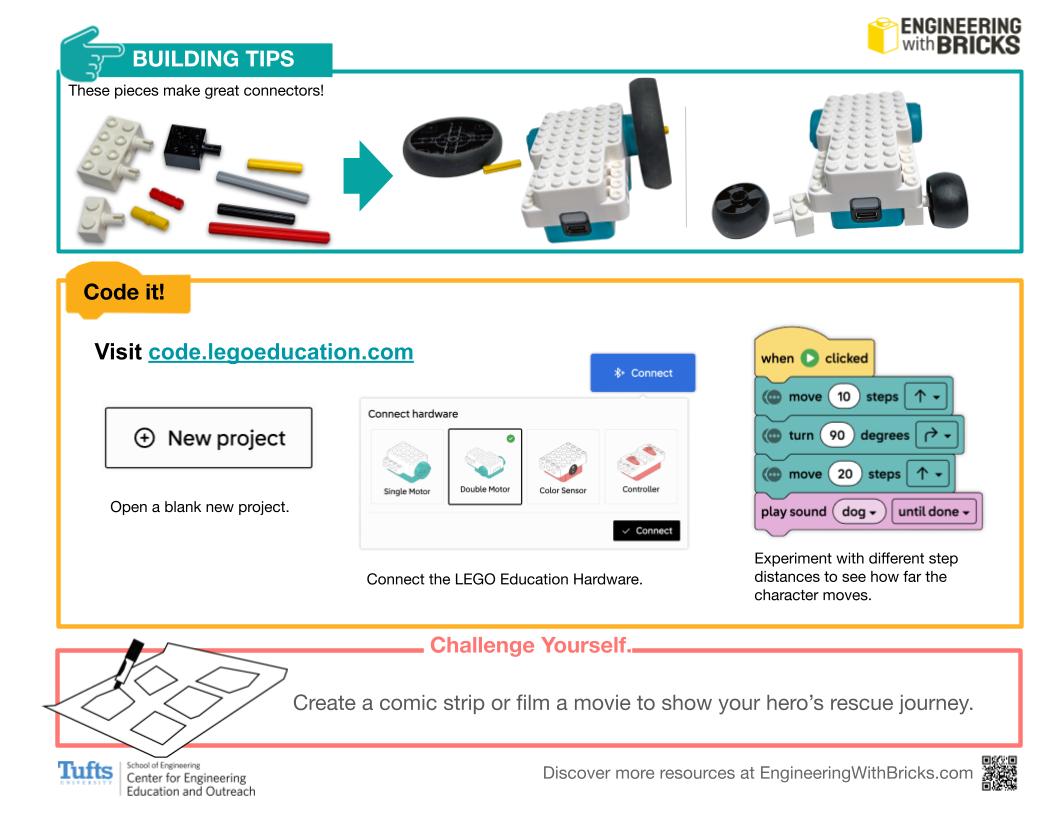 In this activity, teams imagine a brave character on a journey to rescue someone or something. Students bring their story to life by building their characters and scenes and programming their hero's journey.